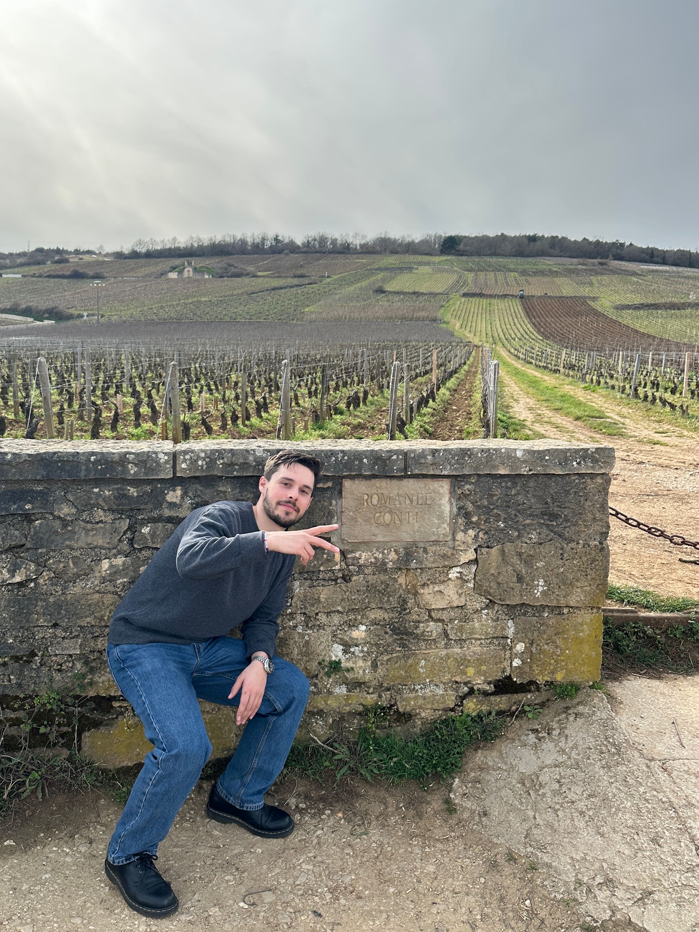 I almost forgot about this photo; here’s me last year at the Romanée-Conti vineyard on my way to the Jura.