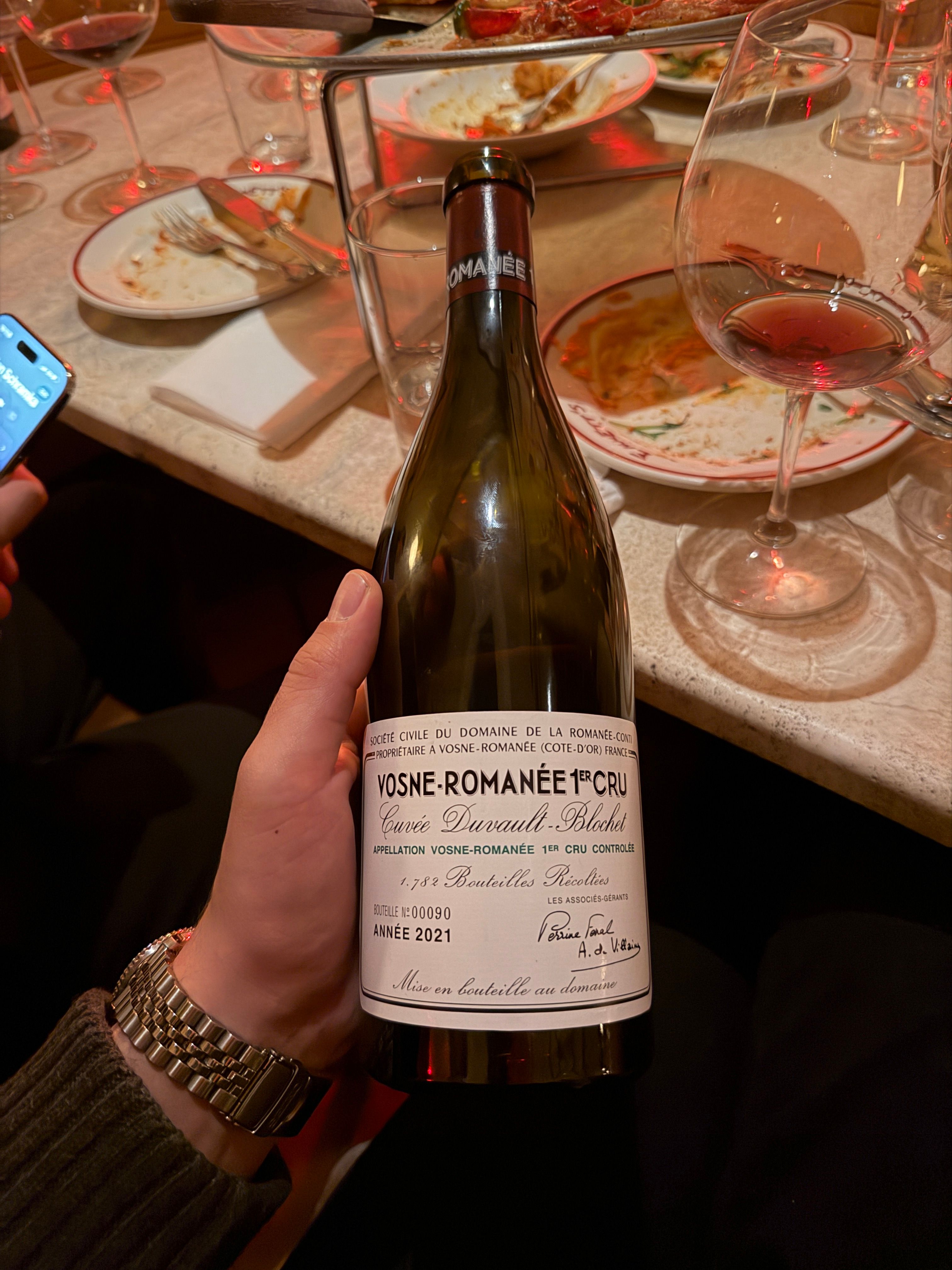 I was extremely fortunate to try a bottle this past Thursday at Emmett’s on Grove in the West Village. Two friends I was with felt like it was the right moment to share, and we opened a DRC Vosne-Romanée 1er Cru 2021. This Premier Cru bottling sits just below Grand Cru in Burgundy’s classification and is made from younger vines within the domaine’s holdings.