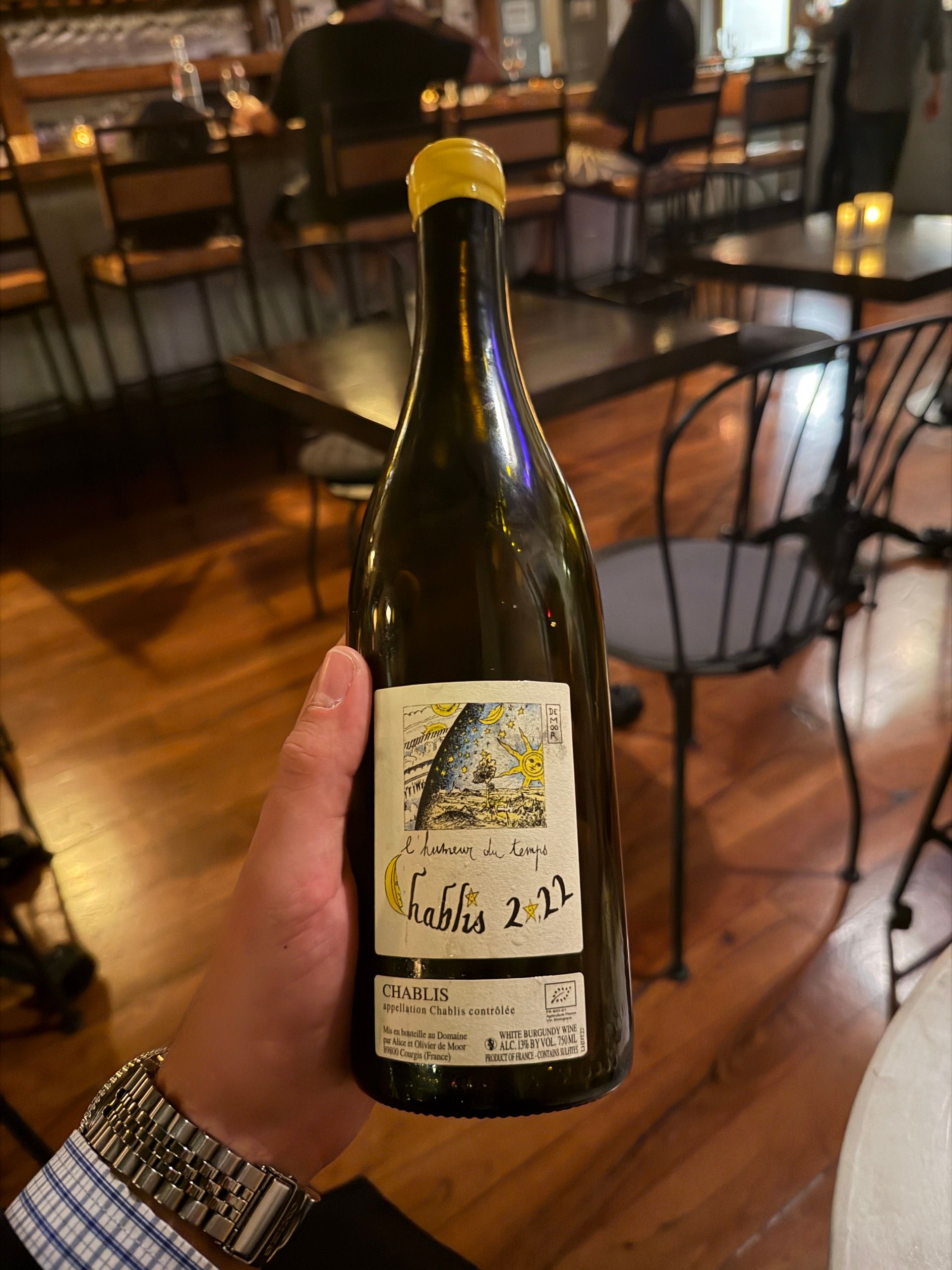 I met up here with a college friend who’d just moved to Chicago, we were just planning to catch up over a glass or two, nothing major. I was pleasantly surprised to see their bible-sized wine list with well-priced bottles of Alice and Olivier De Moor, Labet, and more, stuff you’d never see on a list in New York. We took our server’s advice and ordered the burger (which was phenomenal) and a bottle of 2022 De Moor Chablis, which was exactly what we needed. It was a casual but impressive experience overall.